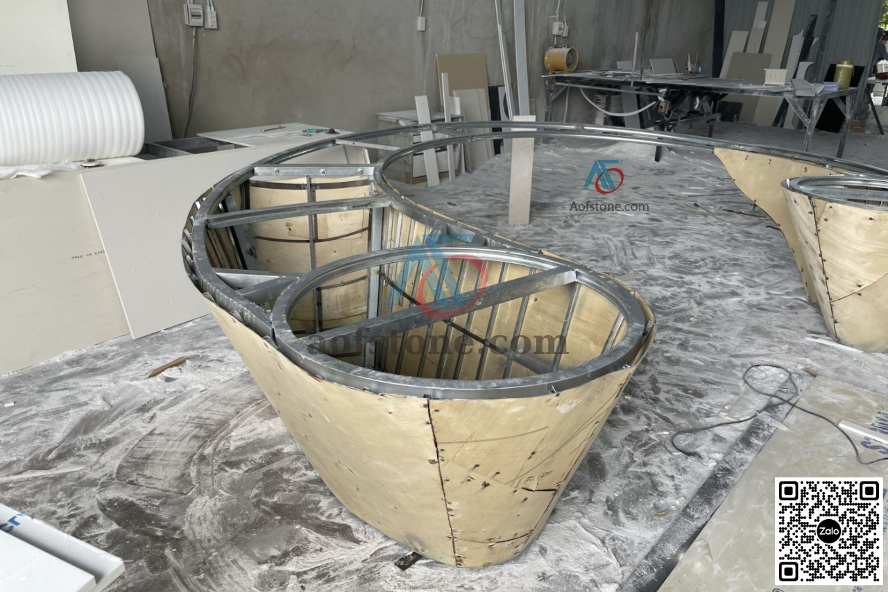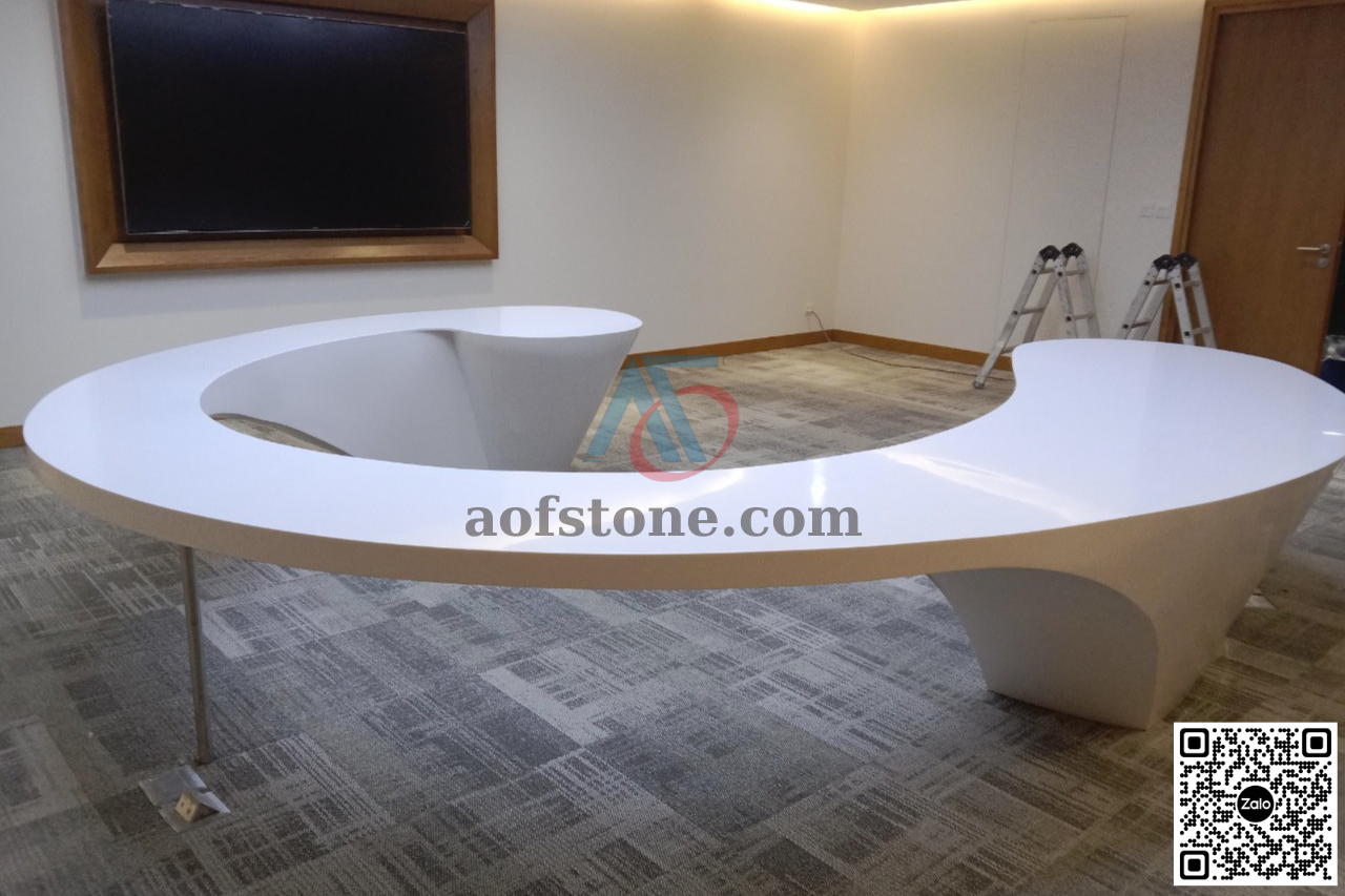 THI CÔNG ĐÁ NHÂN TẠO SOLID SURFACE LÀM QUẦY LỄ TÂN CONG TRÒN CHO PV GAS