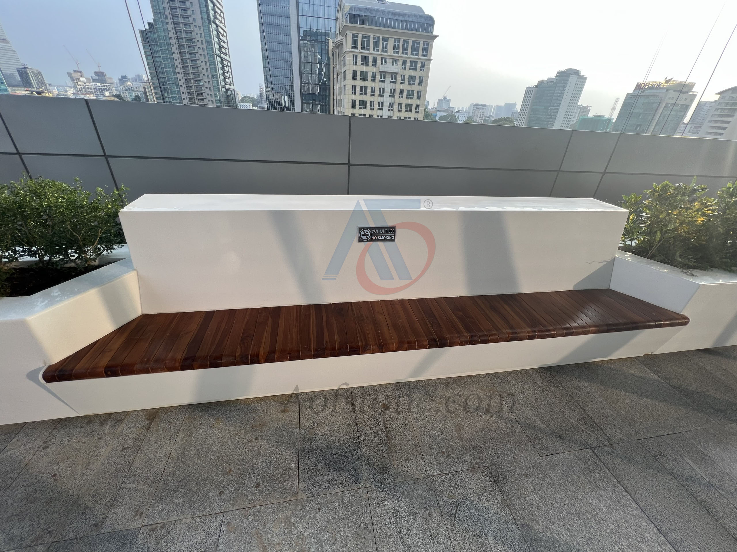 4. Tính thẩm mỹ cao: Ghế ngồi và kệ bông bằng đá Solid Surface có vẻ ngoài sang trọng và hiện đại, thích hợp với nhiều loại kiến trúc và phong cách nội thất.