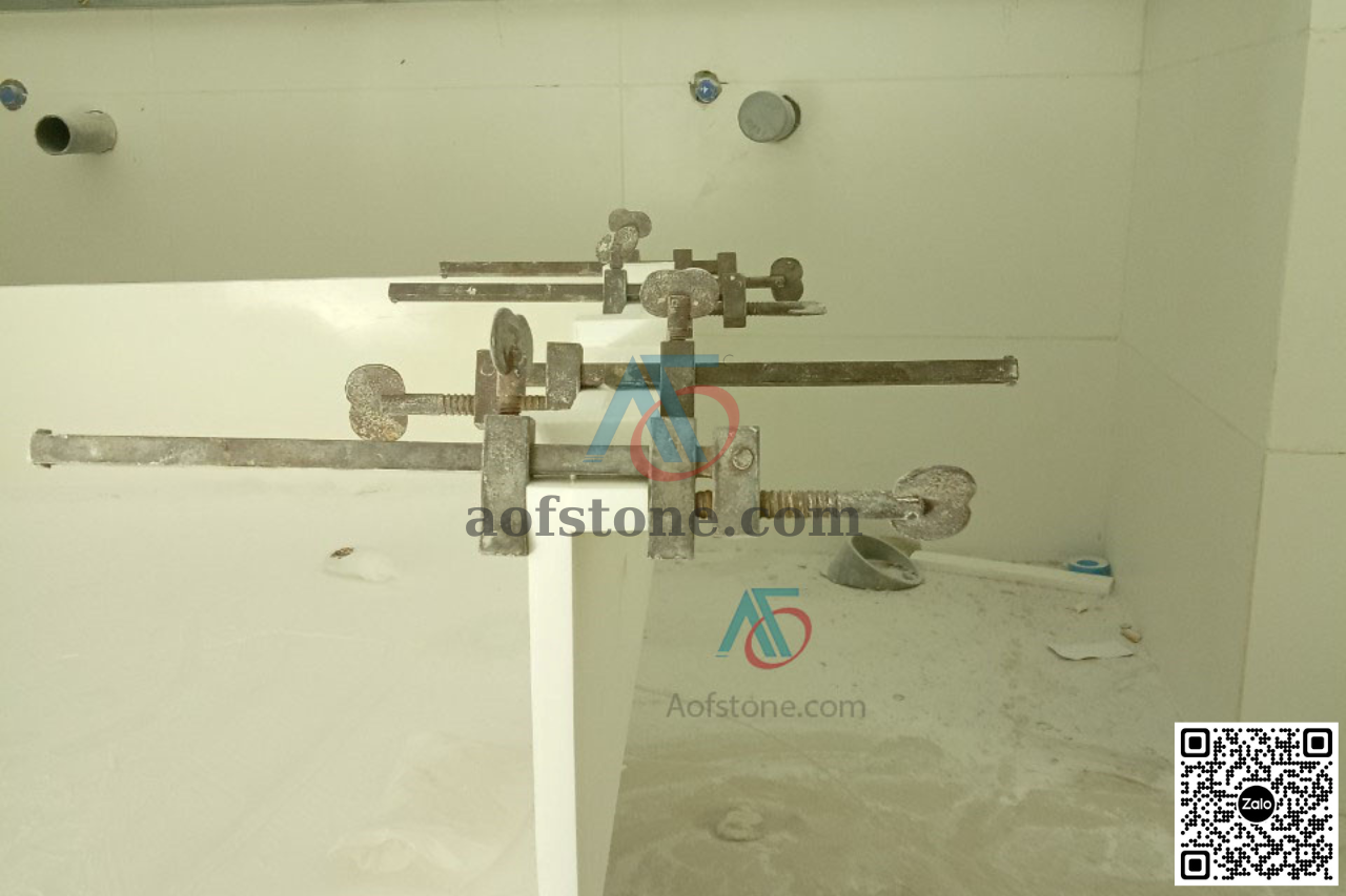 Nội thất AOF chuyên thi công hoàn thiện các sản phẩm về đá Solid Surface làm mặt đá lavabo, chậu rửa Lavabo, mặt bếp, bàn đảo, quầy lễ tân,bồn tắm,…Các sản phẩm về đá nhân tạo solid surface luôn được đảm bảo về chất lượng, màu sắc sang trọng, thi công nhanh chóng, bảo hành sản phẩm 5 năm.