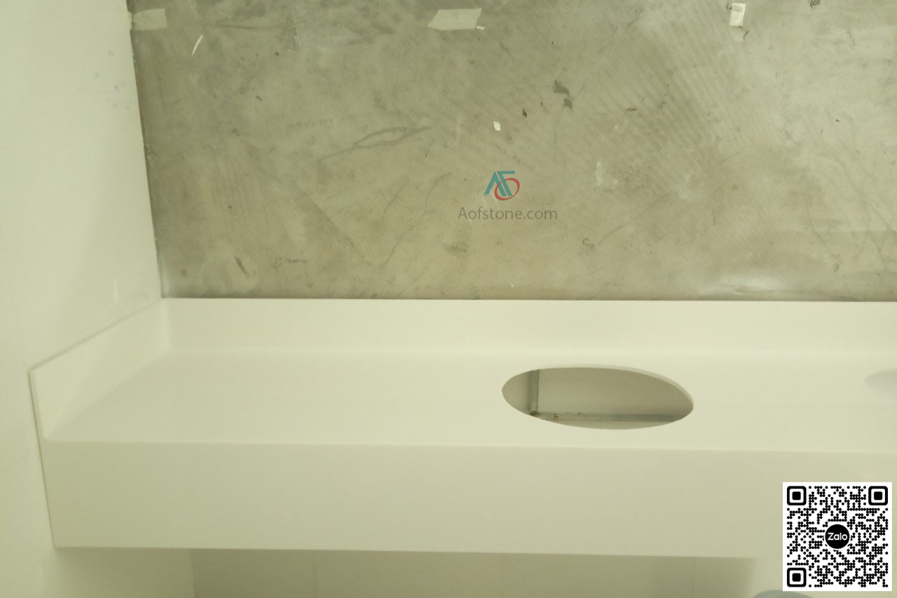 THI CÔNG MẶT LAVABO BẰNG ĐÁ NHÂN TẠO SOLID SURFACE S-105 MILD WHITE CHO TRƯỜNG ĐẠI HỌC VĂN LANG