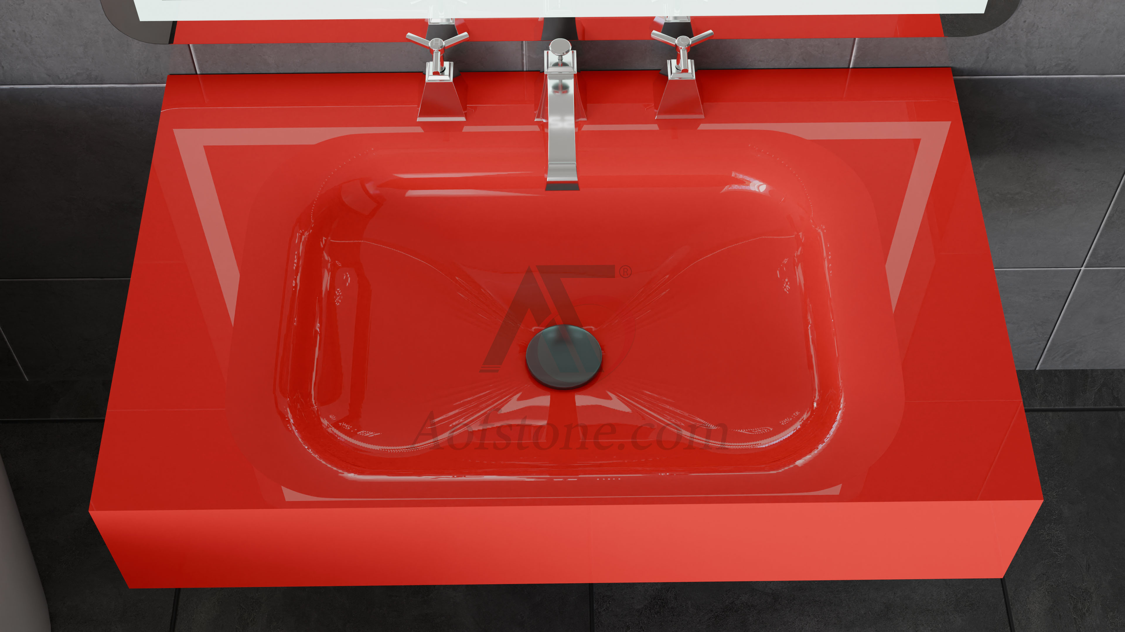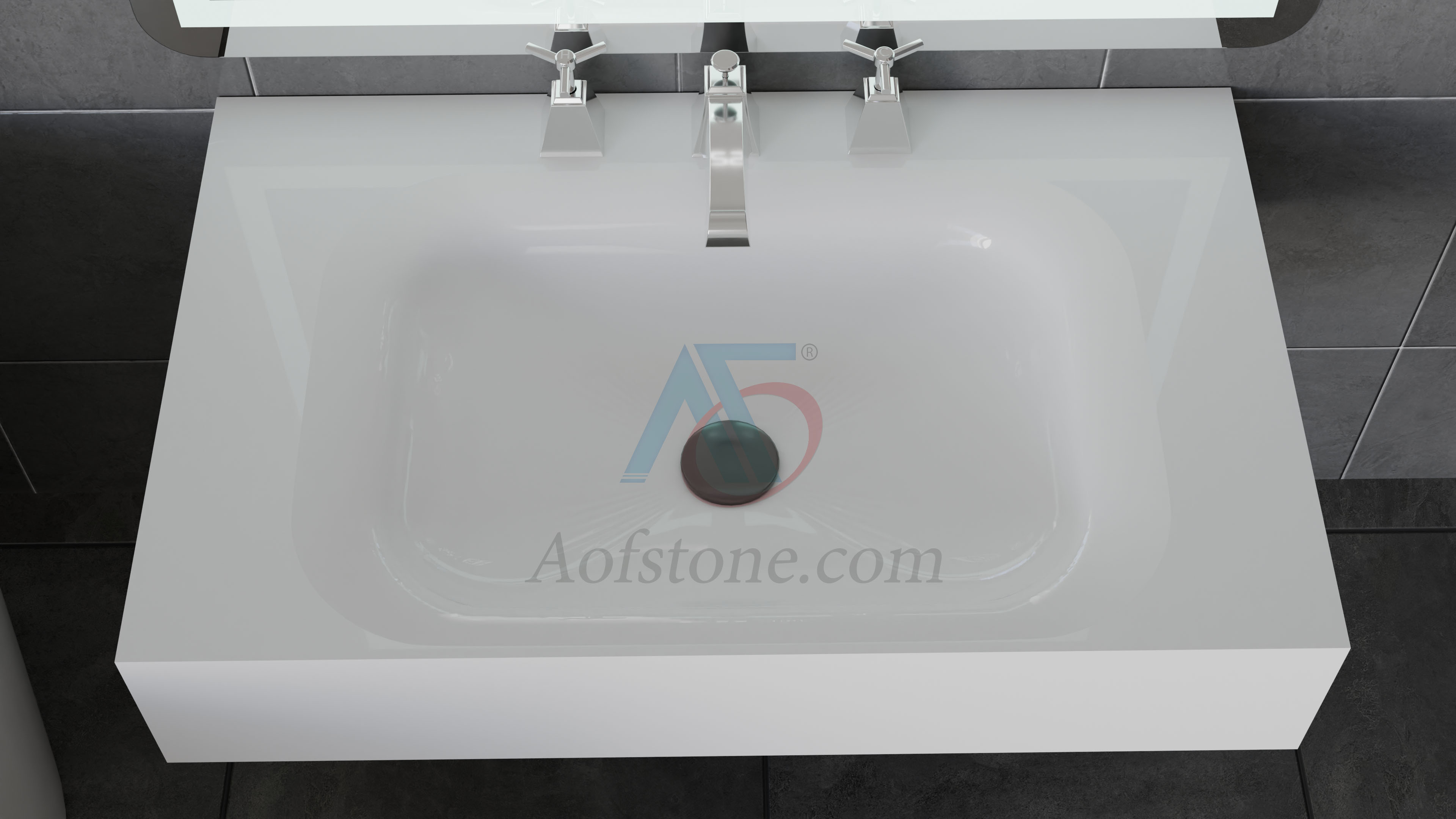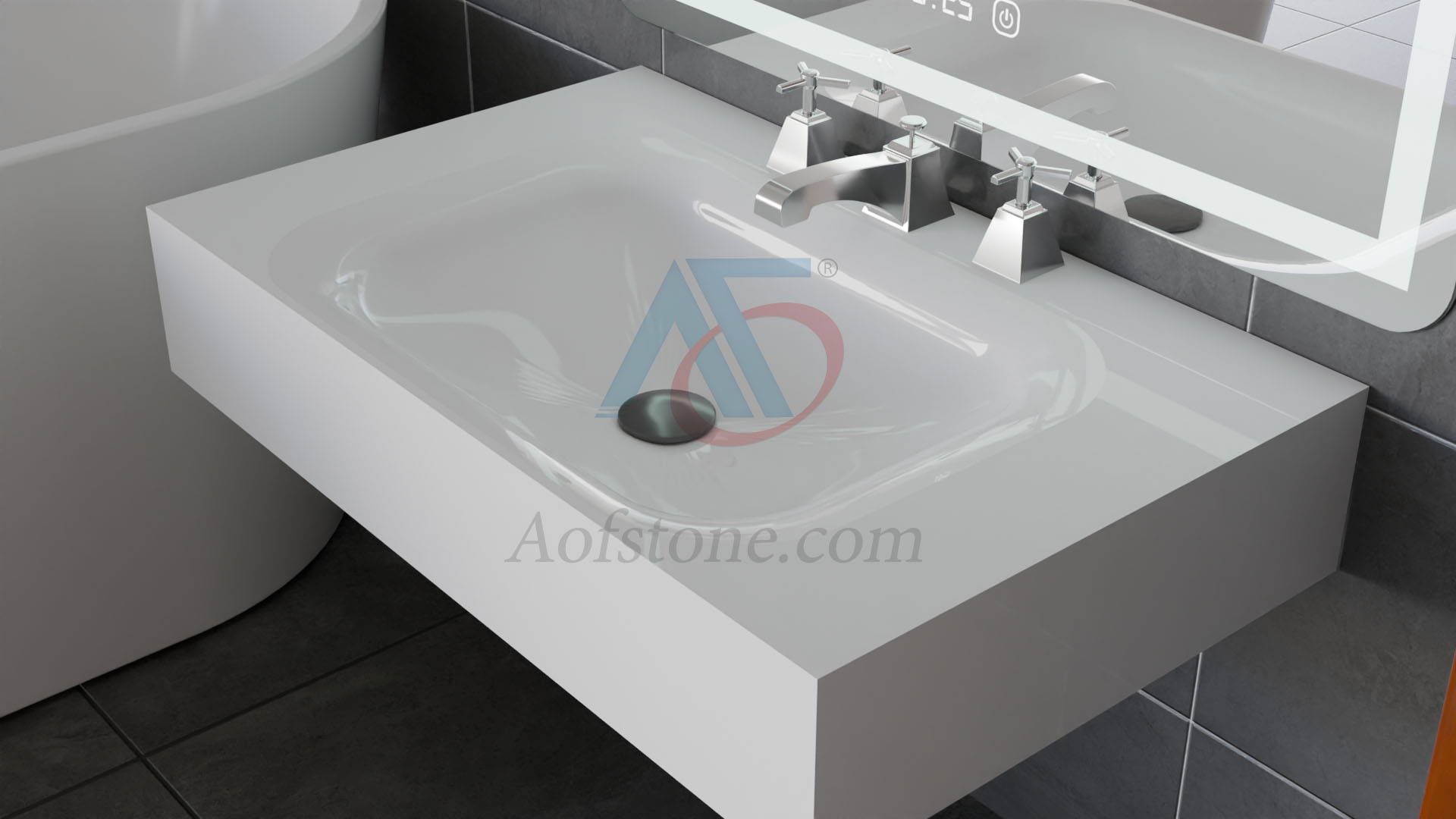 Mẫu chậu rửa mặt bằng đá Solid Surface đẹp âm bàn với thiết kế tiết kiệm diện tích thường được ứng dụng cho những không gian nhỏ. Ngay cả không gian nhà bếp, bạn cũng có thể lắp đặt loại chậu này dùng để vệ sinh các vật dụng. Mẫu chậu rửa mặt này thường được tích hợp với phần tủ hoặc ngăn kéo ở bên dưới. Phần mặt bàn rộng rãi nên bạn có thể để các đồ dùng cần thiết ở trên.