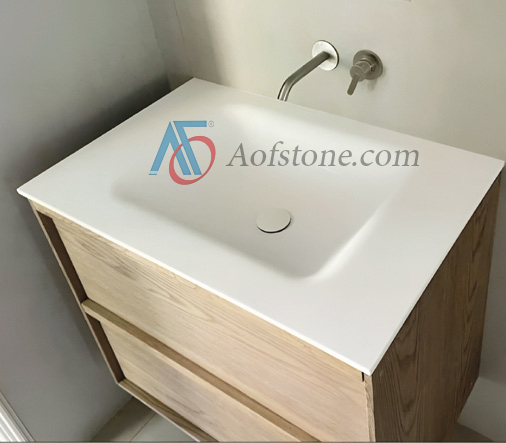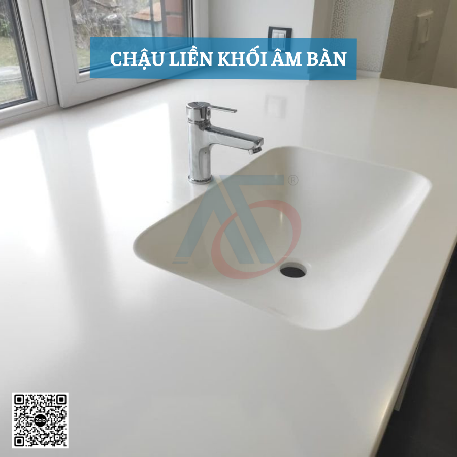Chậu rửa mặt bằng đá Solid Surface âm bàn kết hợp tủ đựng