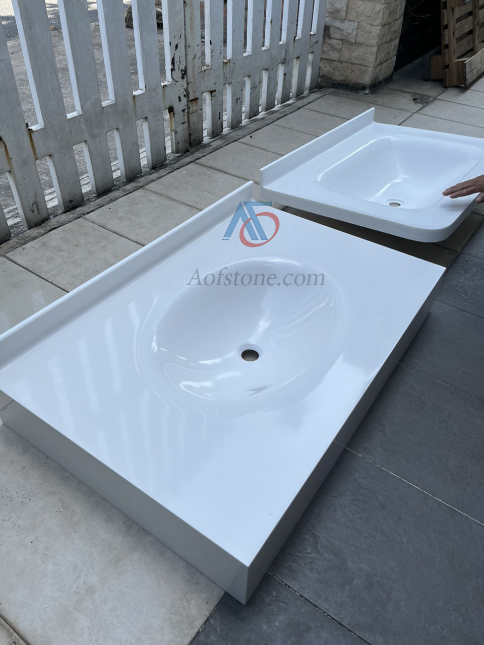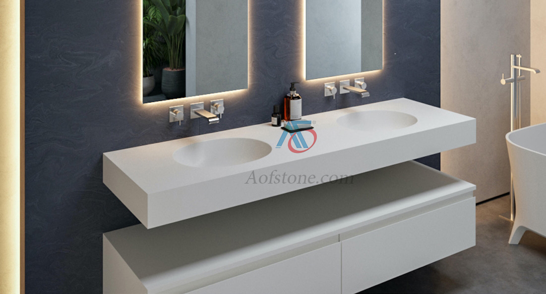 Chậu rửa mặt bằng đá Solid Surface âm bàn kết hợp tủ đựng