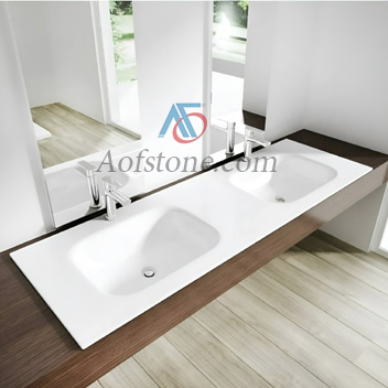 Mẫu chậu rửa mặt bằng đá Solid Surface đẹp âm bàn với thiết kế tiết kiệm diện tích thường được ứng dụng cho những không gian nhỏ. Ngay cả không gian nhà bếp, bạn cũng có thể lắp đặt loại chậu này dùng để vệ sinh các vật dụng. Mẫu chậu rửa mặt này thường được tích hợp với phần tủ hoặc ngăn kéo ở bên dưới. Phần mặt bàn rộng rãi nên bạn có thể để các đồ dùng cần thiết ở trên.