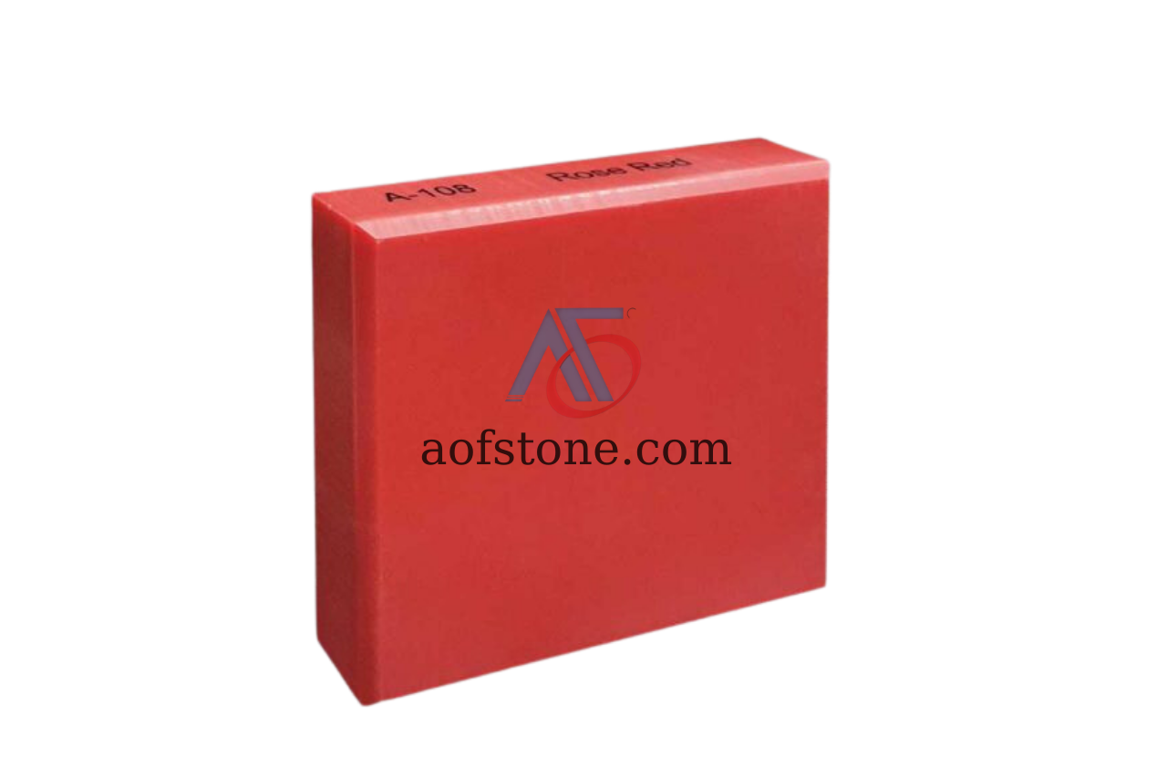 Đá nhân tạo Solid Surface A - 108 Rose Red có thành phần tạo nên là 80% keo Acylic và 20% còn lại là bột đá và chất tạo màu.