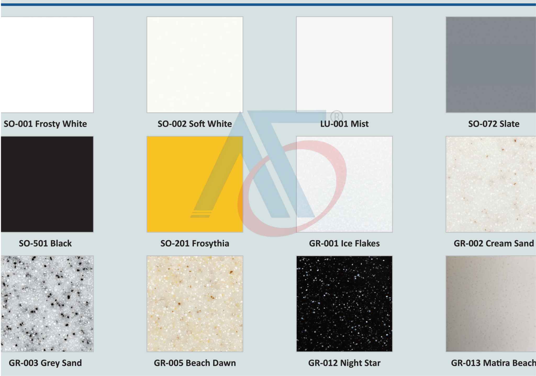 Cấu tạo: Đá nhân tạo Solid Surface S0-002 Soft White có thành phần tạo nên là 80% keo Acylic và 20% còn lại là bột đá và chất tạo màu.