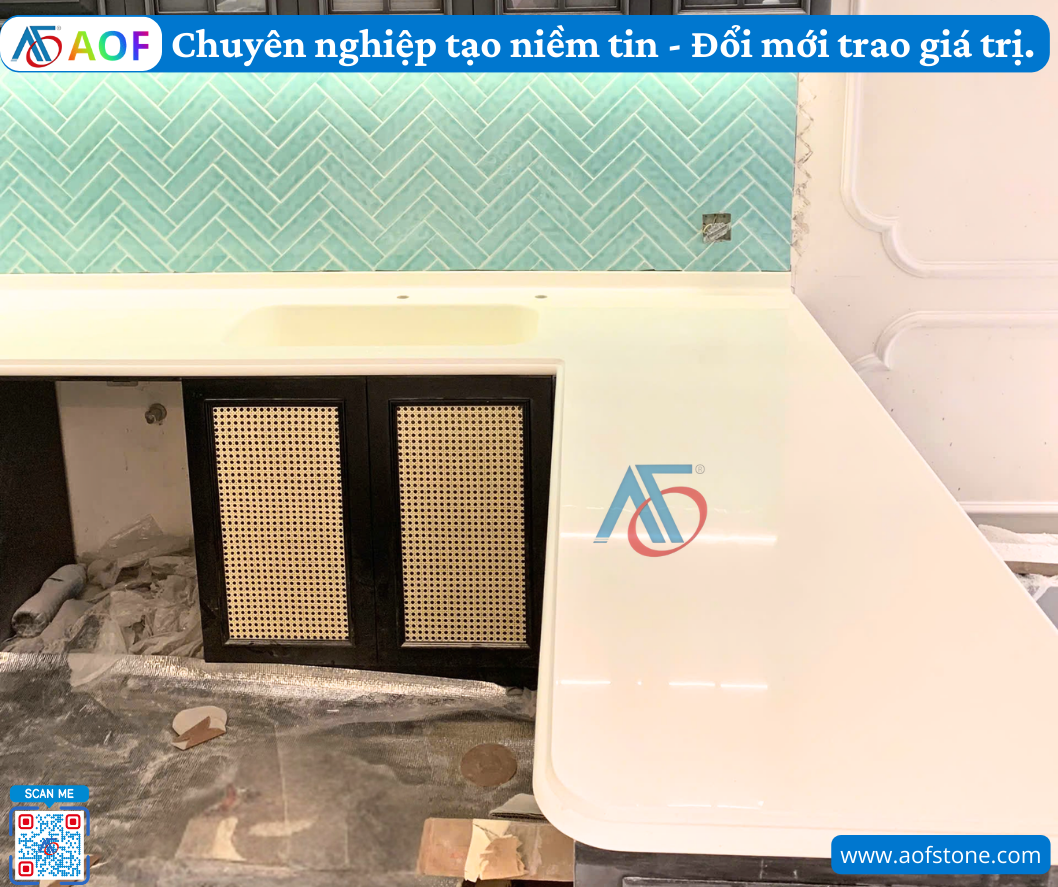 Bắc Giang hoàn thành bàn đảo solid surface liền khối cùng mặt bếp