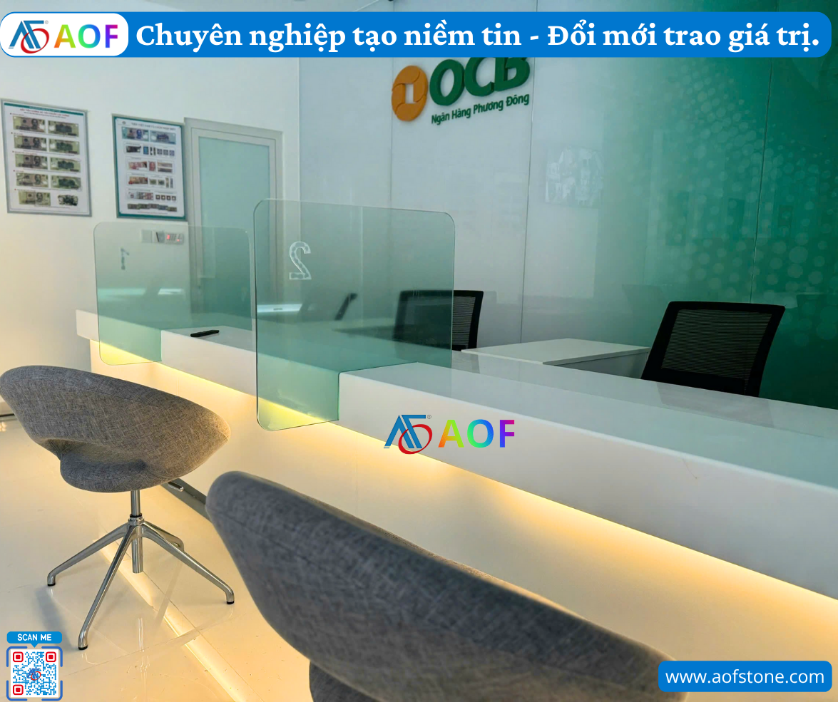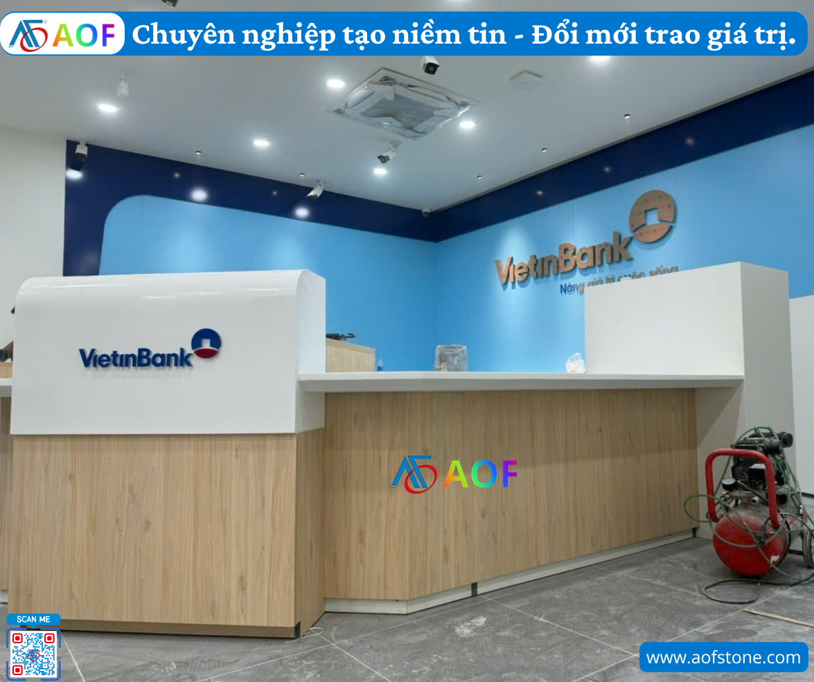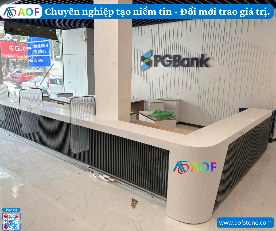 Với những yếu tố trên, việc lựa chọn và quy trình bàn giao quầy giao dịch solid surface bền bỉ không chỉ nhằm nâng tầm không gian làm việc mà còn tạo dựng ấn tượng tốt đẹp cho khách hàng. Hãy để Công ty AOF đồng hành cùng bạn để hiện thực hóa giấc mơ về một quầy giao dịch hoàn hảo.