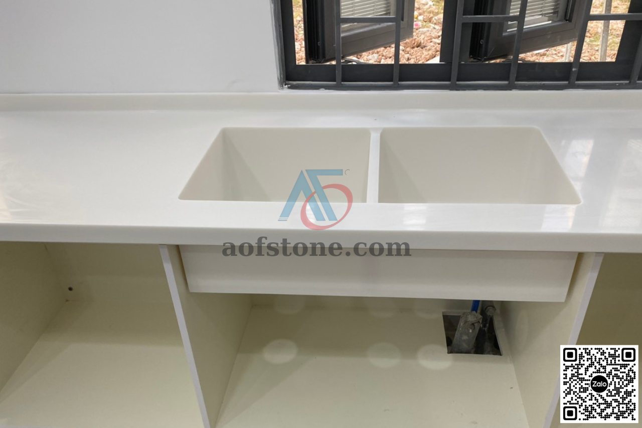 Với tiềm lực về tài chính, vững vàng về kinh nghiệm - Nội thất AOF có đội ngũ thợ chuyên nghiệp, năng động, nhiệt tình kinh nghiệm thi công dày dặn. Chúng tôi luôn cập nhậtcung cấp tất cả các sản phẩm bằng đá nhân tạo Solid Surface trắng vân mới nhất hiện nay.