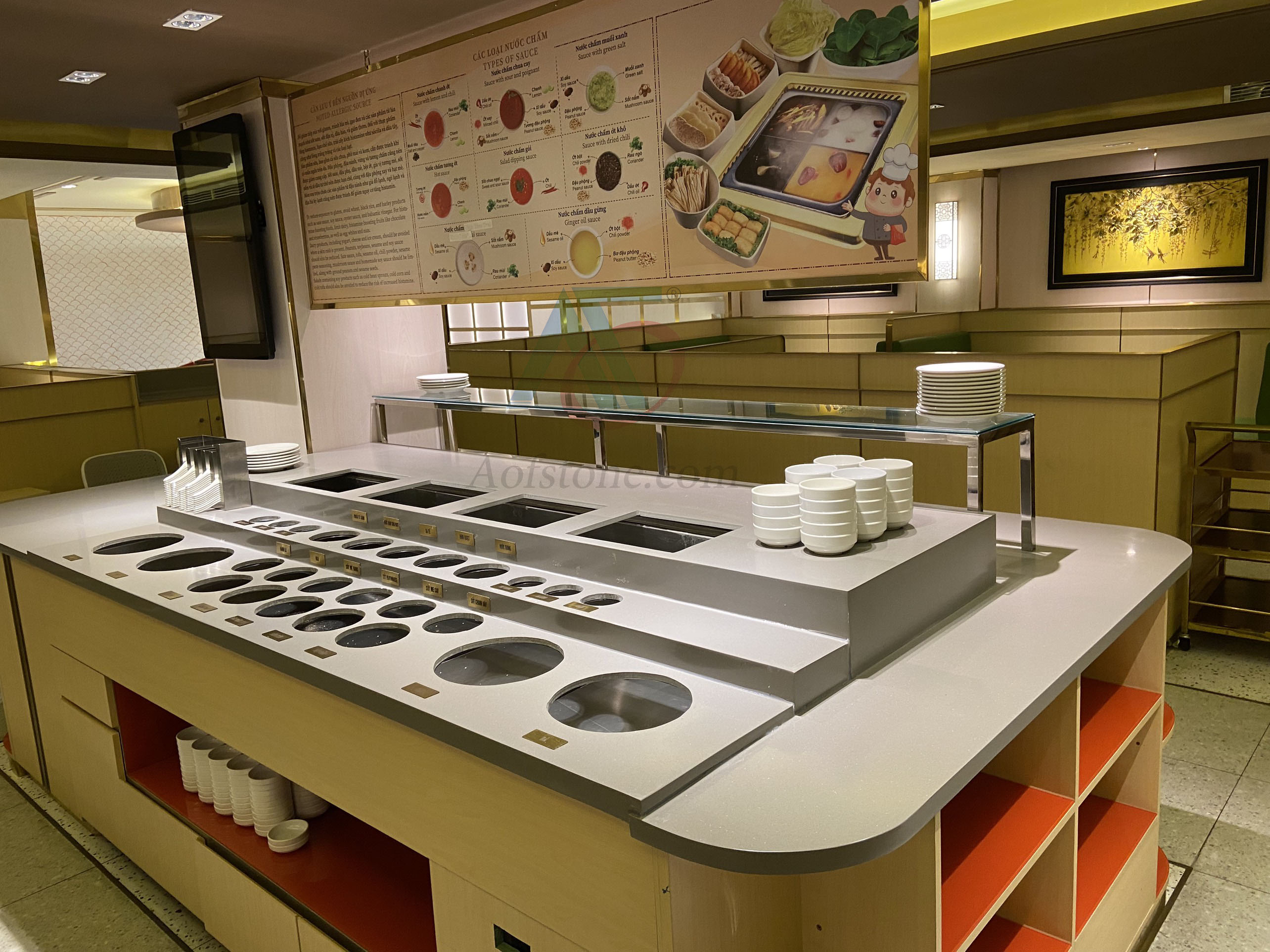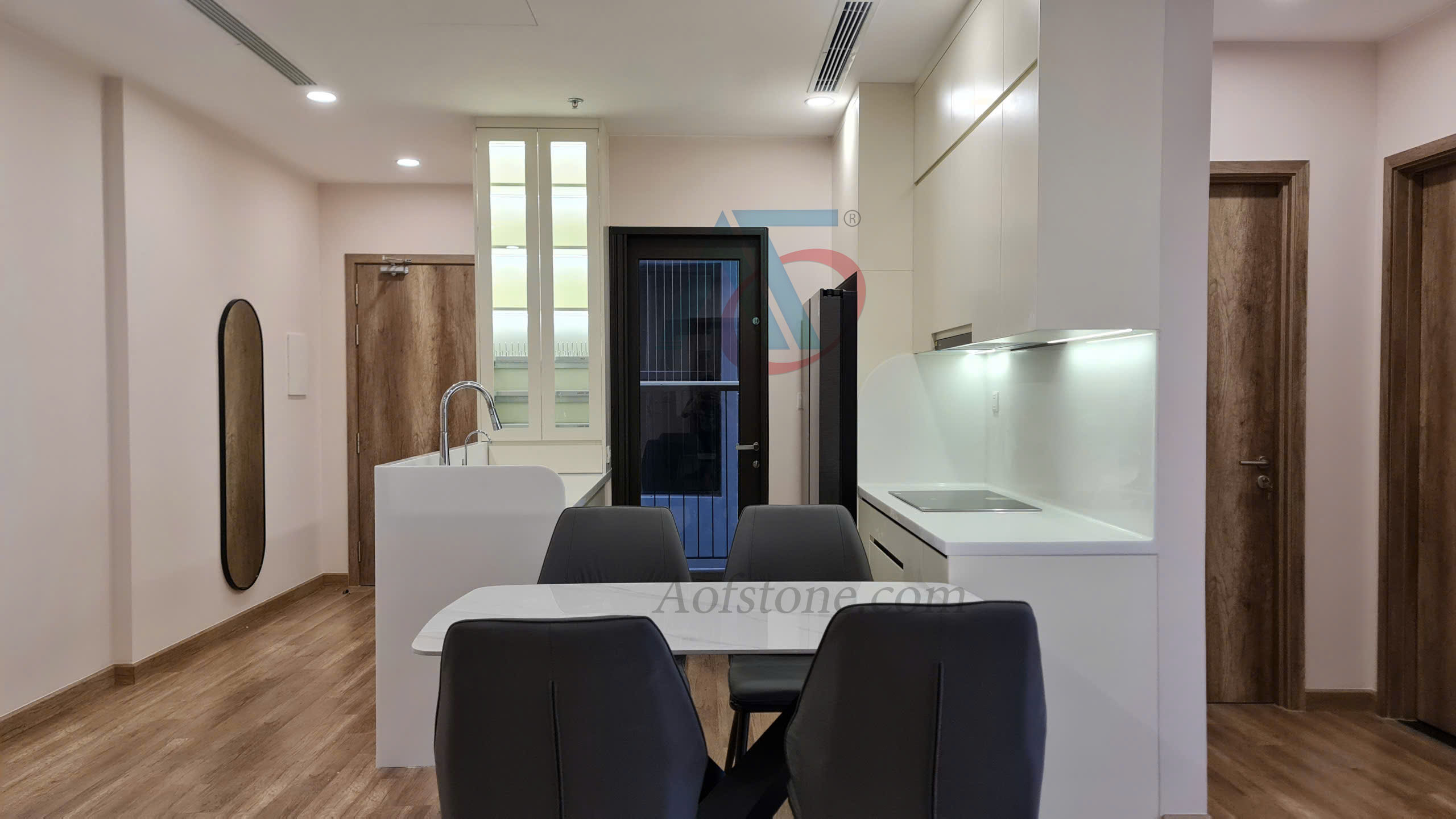 Nội thất AOF chuyên thi công hoàn thiện các sản phẩm về đá Solid Surface làm mặt đá lavabo, chậu rửa Lavabo, mặt bếp, bàn đảo, quầy lễ tân,bồn tắm,…Các sản phẩm về đá nhân tạo solid surface luôn được đảm bảo về chất lượng, màu sắc sang trọng, thi công nhanh chóng, bảo hành sản phẩm 5 năm.