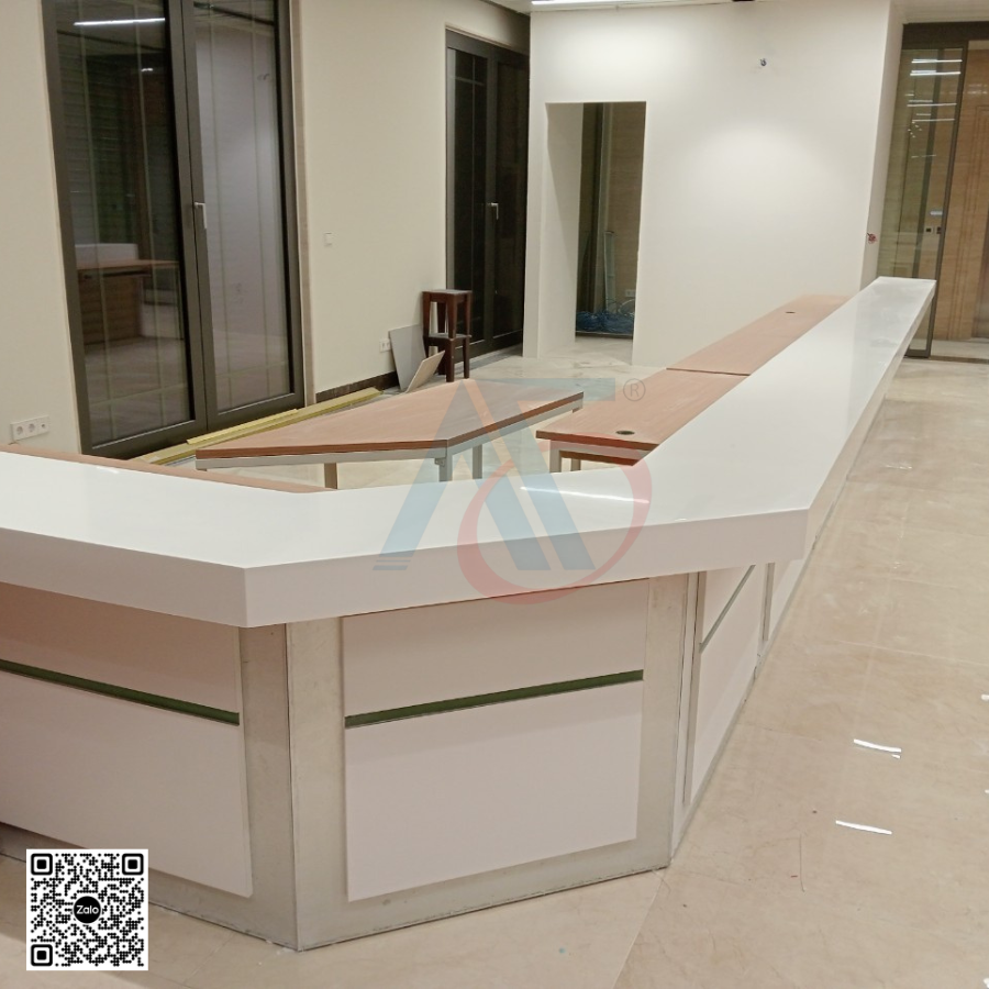 Nội thất AOF chuyên thi công hoàn thiện các sản phẩm về đá Solid Surface làm mặt đá lavabo, chậu rửa Lavabo, mặt bếp, bàn đảo, quầy lễ tân,bồn tắm,…Các sản phẩm về đá nhân tạo solid surface luôn được đảm bảo về chất lượng, màu sắc sang trọng, thi công nhanh chóng, bảo hành sản phẩm 5 năm.