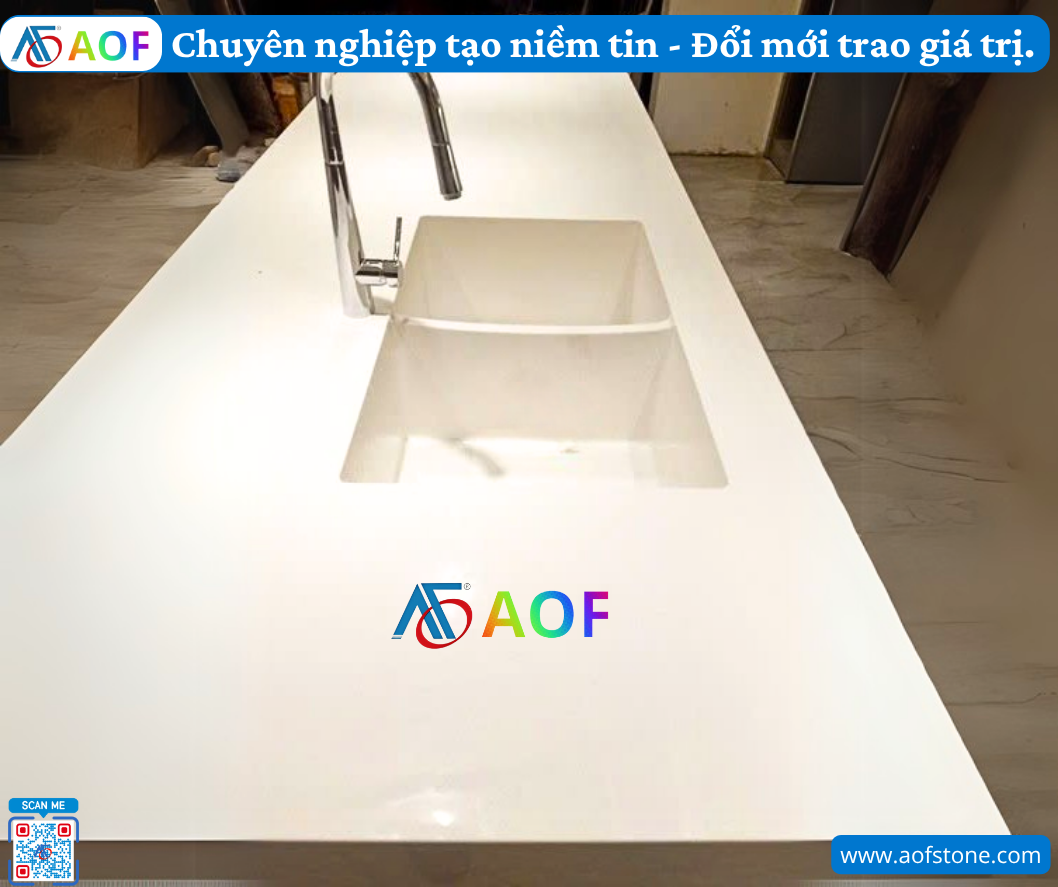 Tóm lại, bồn rửa solid surface liền mặt bếp là một lựa chọn tốt cho nhà ở tại Bình Phước nhờ vào tính thẩm mỹ, khả năng vệ sinh, độ bền cao, và mặc dù chi phí có thể hơi cao nhưng giá trị sử dụng của nó rất đáng để đầu tư. Nếu bạn đang cân nhắc lựa chọn bồn rửa cho căn bếp của mình, đừng quên tham khảo các mẫu mã và dịch vụ của Công ty AOF để có quyết định đúng đắn.