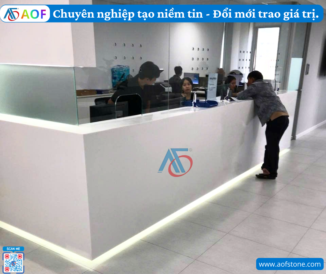 Quầy lễ tân là một trong những yếu tố đầu tiên mà khách hàng hay đối tác nhìn thấy khi bước vào một không gian văn phòng hay công ty. Với sự phát triển nhanh chóng của ngành xây dựng và thiết kế nội thất, việc lựa chọn quầy lễ tân phù hợp không chỉ giúp nâng tầm không gian mà còn thể hiện thương hiệu và giá trị của doanh nghiệp. Trong đó, chất liệu Solid Surface đã trở thành một lựa chọn phổ biến nhờ những đặc tính vượt trội của nó.