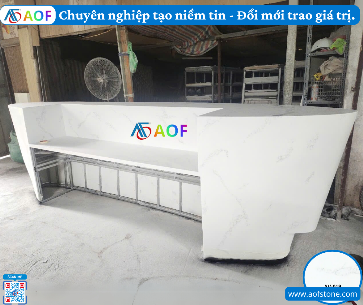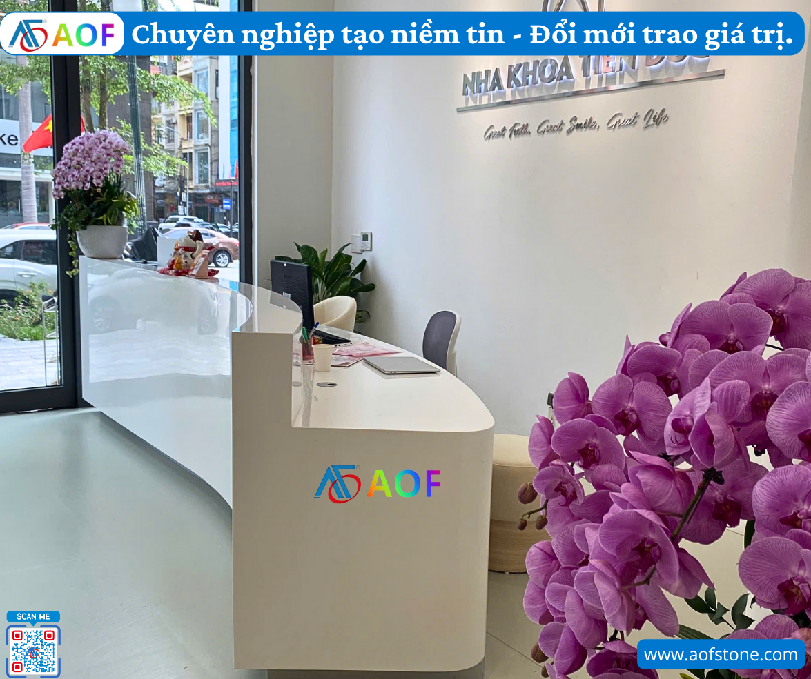 Đơn vị thi công không chỉ cung cấp sản phẩm mà còn đồng hành cùng bạn từ ý tưởng đến hiện thực. Tại AOF, bạn sẽ được tư vấn kỹ lưỡng và phối hợp chặt chẽ để đạt được sản phẩm cuối cùng hoàn hảo nhất. Họ chấp nhận mọi yêu cầu và đưa ra giải pháp sáng tạo đảm bảo tính thẩm mỹ và chức năng cho quầy lễ tân của bạn.
