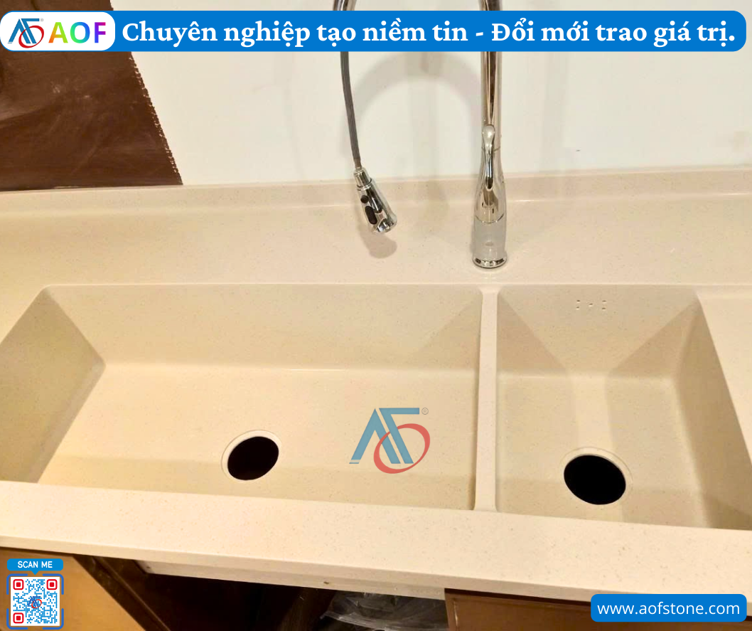 - Đá nhân tạo: Bền, đẹp nhưng chi phí cao hơn.