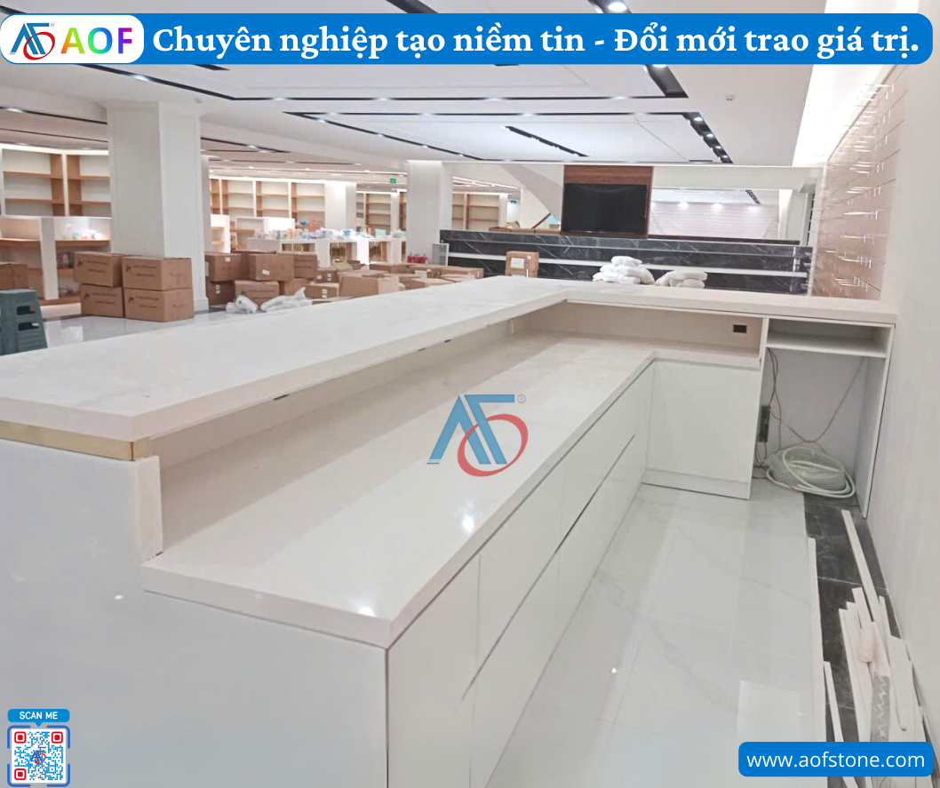Khi quyết định đầu tư vào quầy lễ tân Solid Surface, việc lựa chọn địa chỉ cung cấp uy tín là vô cùng quan trọng. Công ty AOF là một trong những đơn vị hàng đầu tại Phú Yên chuyên cung cấp các sản phẩm quầy lễ tân chất lượng cao, bao gồm cả quầy lễ tân Solid Surface nguyên khối chống ố.
