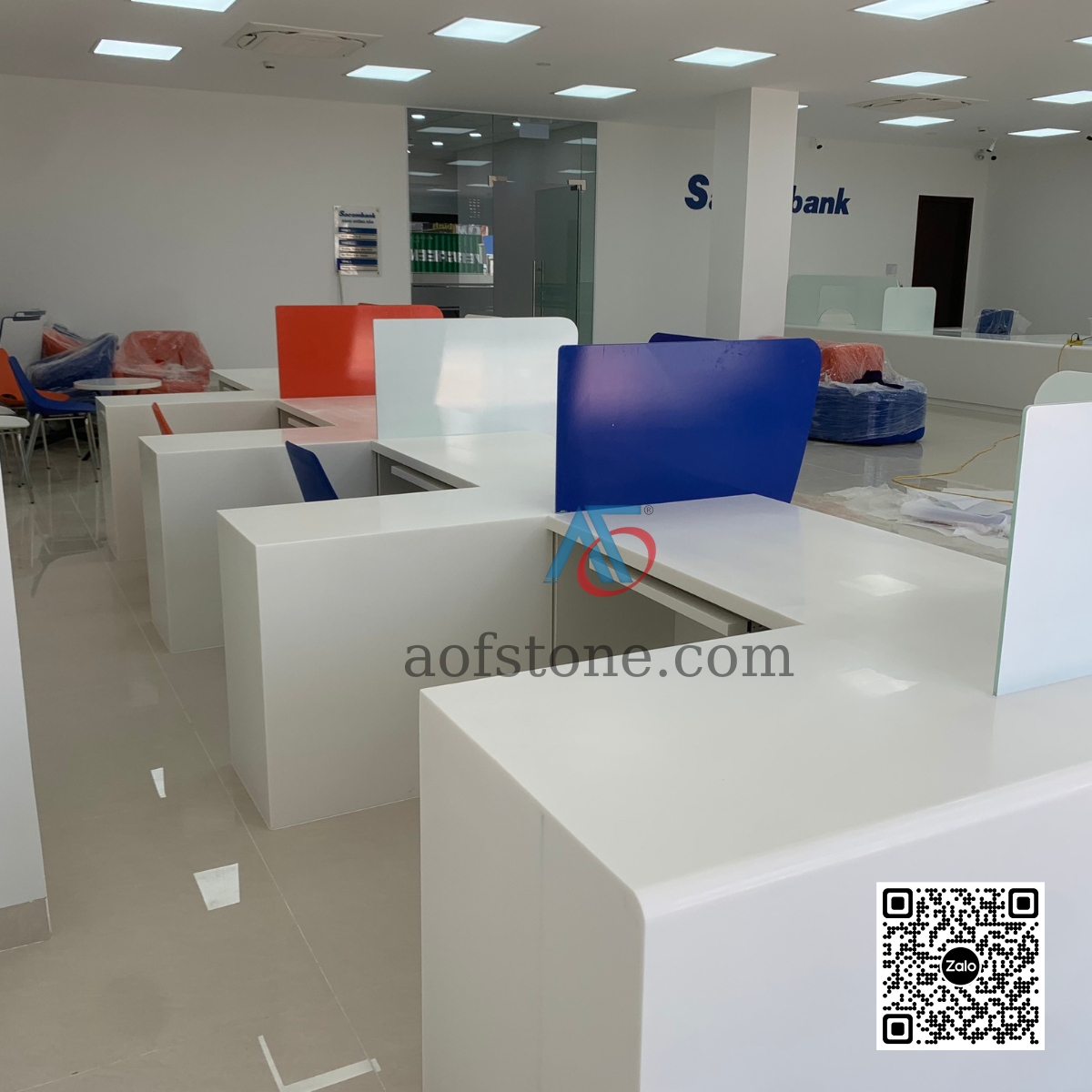 Đặc biệt, việc sử dụng đá Solid Surface còn thể hiện cam kết của Ngân Hàng Sacombank trong việc mang đến dịch vụ tốt nhất cho khách hàng. Chúng tôi rất hân hạnh được làm phần trong sự phát triển và thành công của dự án này.