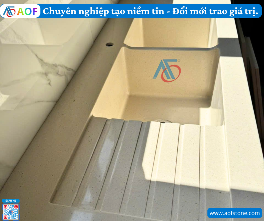 Tóm lại, bồn rửa Solid Surface liền mặt bếp không chỉ mang lại vẻ đẹp thẩm mỹ cho không gian bếp mà còn cung cấp nhiều tiện ích trong cuộc sống hàng ngày. Dịch vụ Lắp đặt bồn rửa solid surface liền mặt bếp ở Yên Bái của Công ty AOF cam kết cung cấp sản phẩm chất lượng cao, cùng với dịch vụ thi công chuyên nghiệp. Hãy biến không gian bếp của bạn thành một nơi lý tưởng vừa đẹp vừa tiện nghi ngay hôm nay!