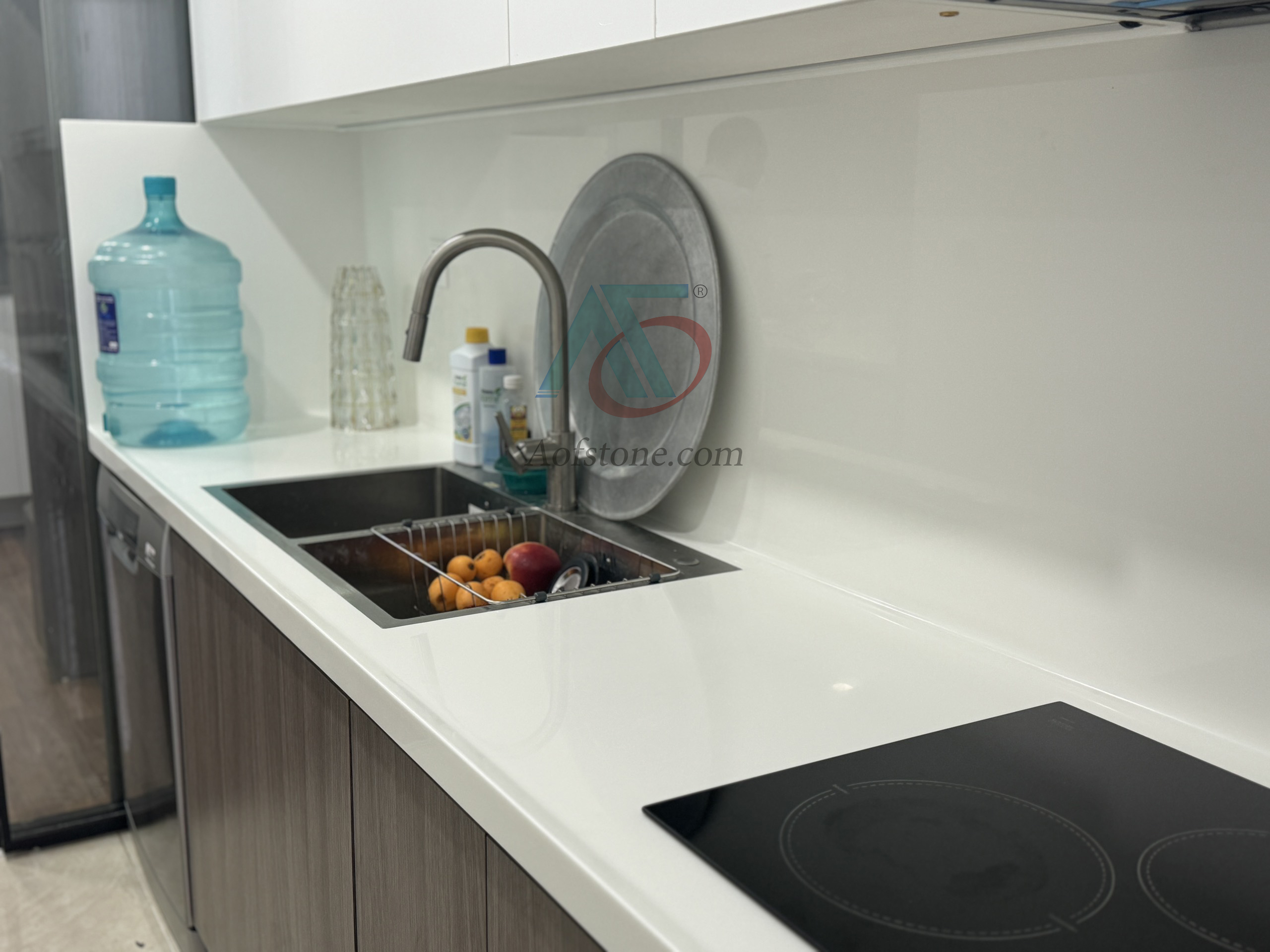 Nội thất AOF chuyên thi công hoàn thiện các sản phẩm về đá Solid Surface làm mặt đá lavabo, chậu rửa Lavabo, mặt bếp, bàn đảo, quầy lễ tân,bồn tắm,…Các sản phẩm về đá nhân tạo solid surface luôn được đảm bảo về chất lượng, màu sắc sang trọng, thi công nhanh chóng, bảo hành sản phẩm 5 năm.