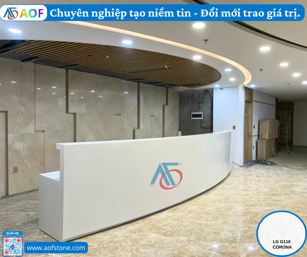 Thi công quầy lễ tân solid surface theo phong cách hiện đại tại Lâm Đồng không chỉ giúp tạo điểm nhấn ấn tượng cho không gian doanh nghiệp mà còn mang lại nhiều lợi ích thiết thực. Từ nét đẹp thẩm mỹ, tính bền bỉ đến khả năng dễ dàng bảo trì, Solid Surface thực sự là lựa chọn đúng đắn cho mọi doanh nghiệp. Hãy liên hệ với Công ty AOF để được tư vấn chi tiết và giải pháp tối ưu cho không gian quầy lễ tân của bạn.