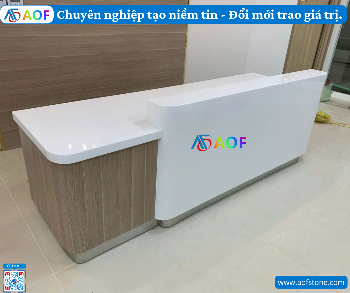 Solid surface là lựa chọn hoàn hảo cho quầy lễ tân của bạn. Với những thông tin trên, bạn có thể tự tin tìm công ty làm quầy lễ tân solid surface uy tín ở An Giang mà vẫn đảm bảo chất lượng và giá cả hợp lý. Hãy liên hệ với Công ty AOF để được tư vấn chi tiết hơn về sản phẩm và dịch vụ phù hợp với nhu cầu của bạn.