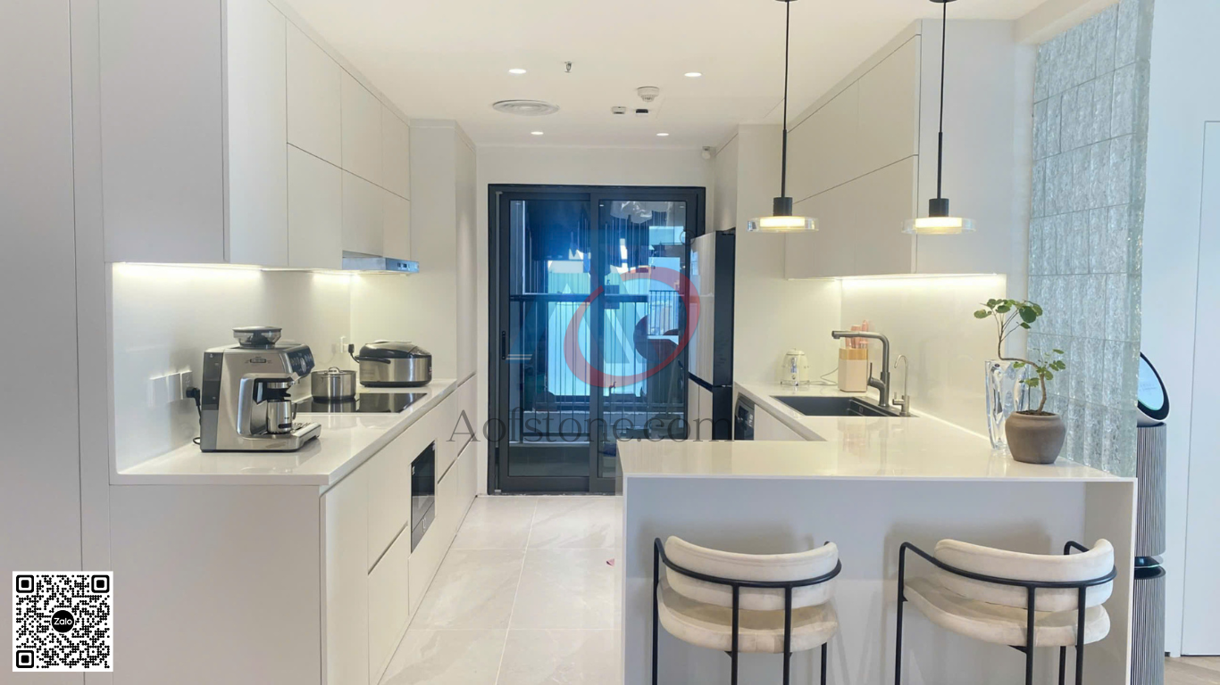 • Bàn bếp: Bề mặt rộng rãi, dễ vệ sinh, chịu nhiệt tốt.