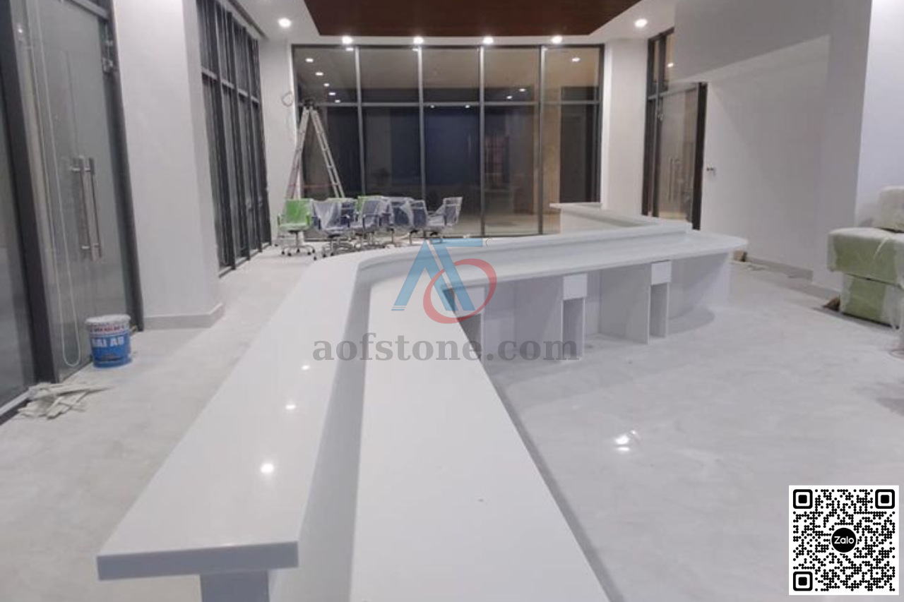 Quầy bằng đá nhân tạo Solid Surface là một trong những lựa chọn phổ biến cho các khu vực tiếp khách như khách sạn, khu nghỉ dưỡng, trung tâm thương mại, hay các văn phòng đại diện