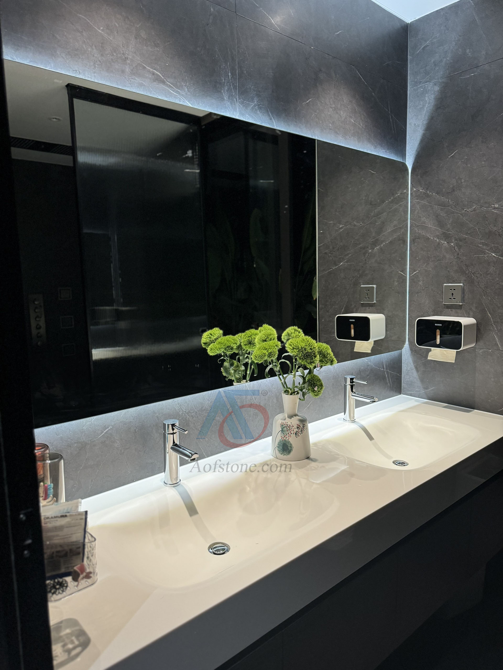 Bàn đá lavabo chậu rửa bằng đá nhân tạo Solid Surface ngày càng được ưa chuộng bởi sở hữu nhiều ưu điểm vượt trội so với các loại vật liệu truyền thống như đá tự nhiên, sứ. Dưới đây là một số mẫu bàn đá lavabo bằng đá nhân tạo Solid Surface đẹp, độc đáo mà bạn có thể tham khảo: